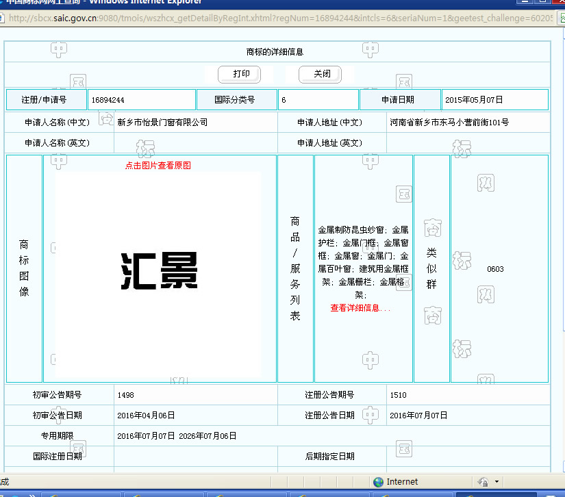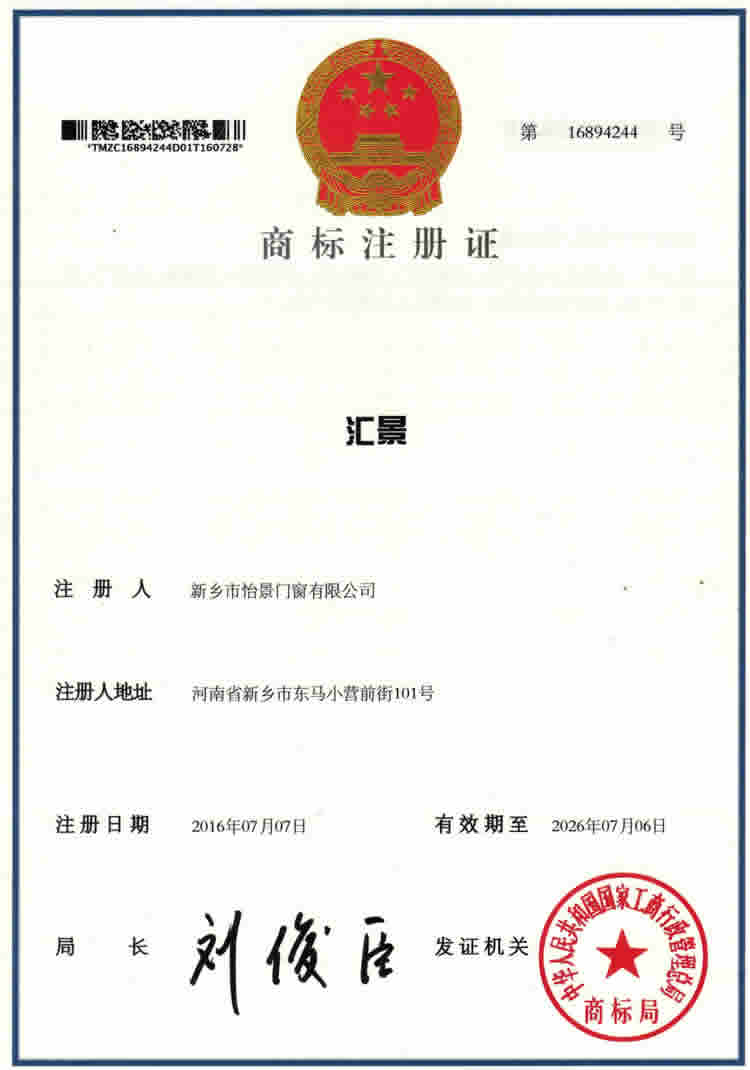 祝賀怡景公司成功注冊“匯景”商標