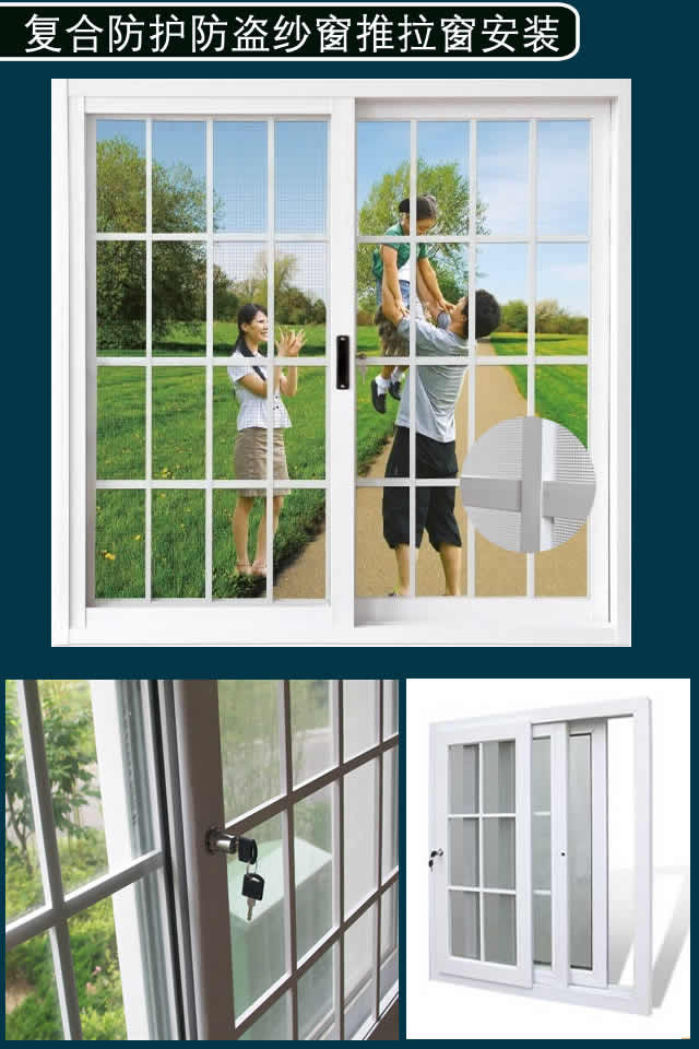 2、框中框金鋼網紗窗3、三推金鋼網紗窗