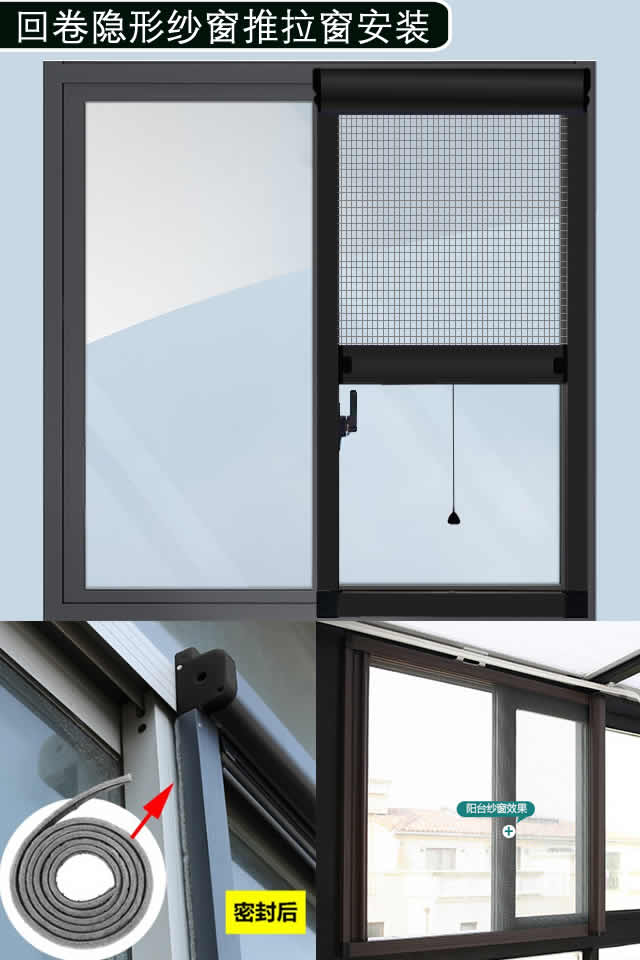 推拉窗適合安裝什么新款的紗窗(圖集)推拉窗金剛網紗窗高透紗窗框中框紗窗隱形折疊紗窗